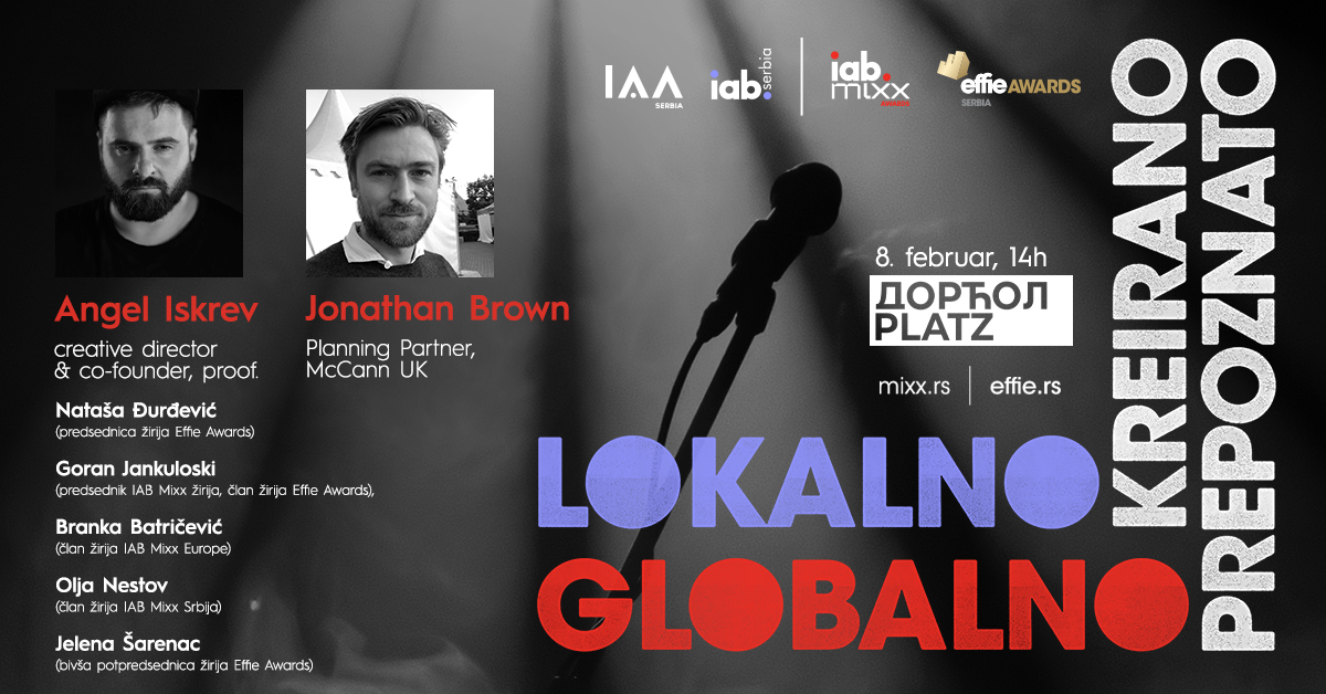 U okviru događaja koji nosi naziv Lokalno kreirano, globalno prepoznato predavanja će održati dva stručnjaka iz inostranstva – Angel Iskrev (Creative director & Co-founder, proof.) i Jonathan Brown (Planning Partner, McCann UK). Nakon predavanja, o takmičenjima Effie i Mixx govoriće domaći stručnjaci.